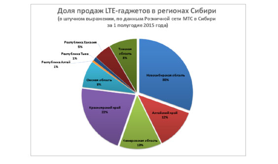 В целом продажи LTE-смартфонов по итогам первого полугодия 2015 года по сравнению с аналогичным периодом прошлого года выросли в четыре раза в штучном выражении. При этом каждый пятый смартфон, проданный в сибирской рознице в первом полугодии 2015 года? с поддержкой LTE. Лидерами по продажам LTE-смартфонов в Сибири стала Новосибирская область и Красноярский край — на них пришлось около половины всех реализованных «умных телефонов» для работы в сети 4G в Розничной сети МТС в Сибири в первом полугодии.