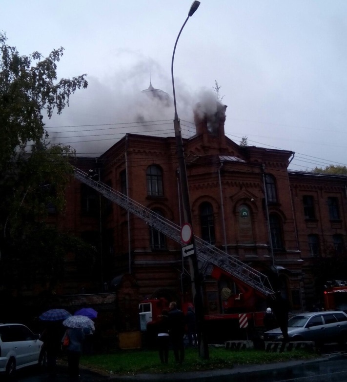 Сегодня, 12 сентября, в здании бывшего томского военно-медицинского института на пр. Кирова, 49 произошел пожар.