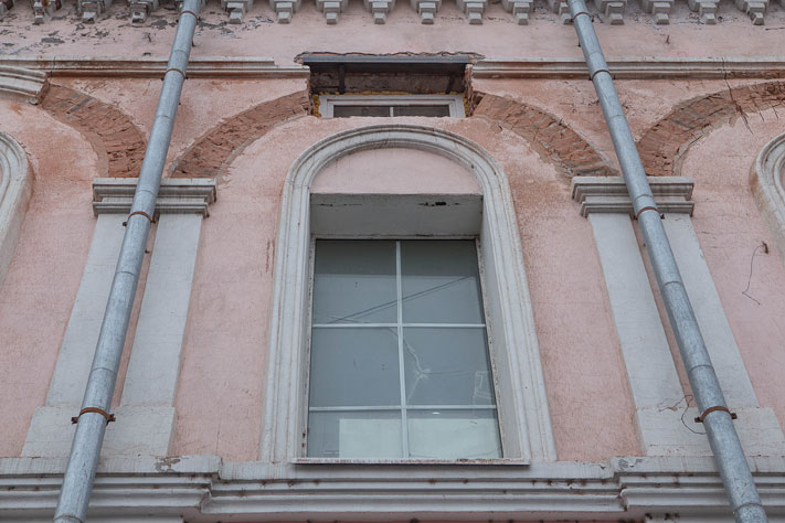 На историческом здании по пр. Ленина, 82а в центре Томска сбивают лепной декор. Ранее в фасаде дома, построенного в конце XIX века, был прорублен дополнительный ряд окон.