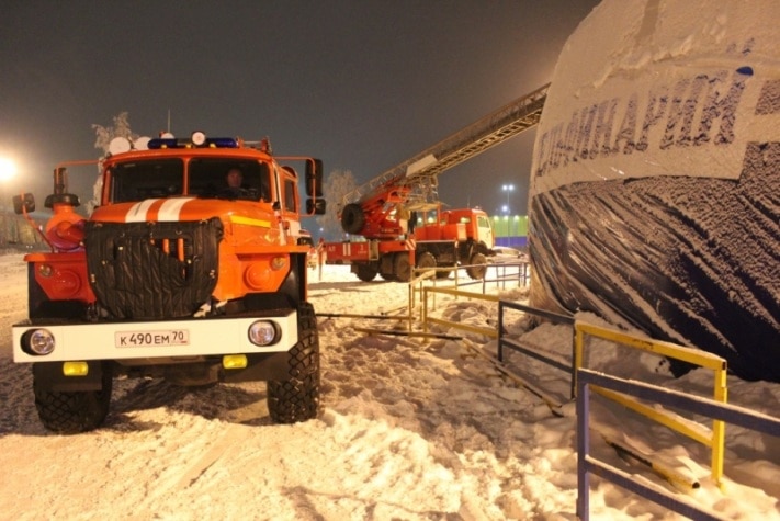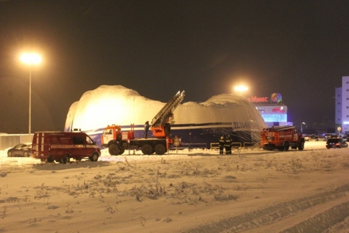Томские пожарные помогли восстановить купол передвижного дельфинария (ФОТО)