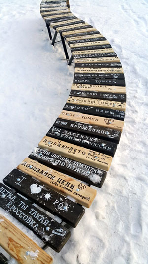 Новый арт-объект расположен на территории городского сада, рядом с деревянной крепостью. Фактически из расписанных томичами дощечек сделано четыре лавочки, которые объединены в одну визуальной концепцией.