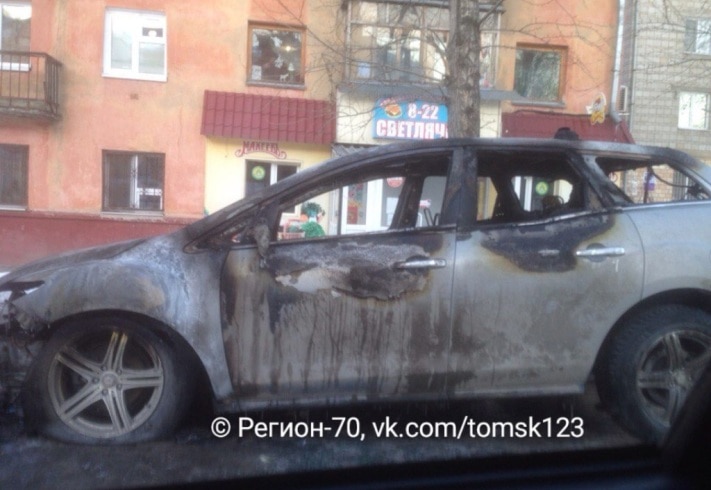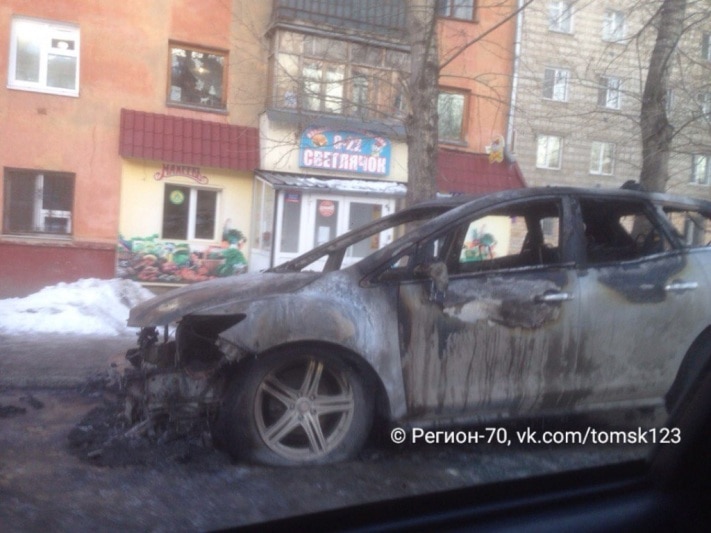 Утром во дворе одного из жилых домов Томска загорелась Mazda (ФОТО)