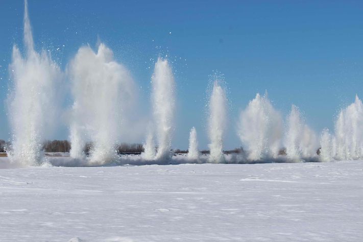 Ледовзрывные работы, проведенные специалистами «Кузбассвзрыва», позволят во время ледохода пустить воду не только по основному руслу реки, но и по более прямой и глубокой протоке.