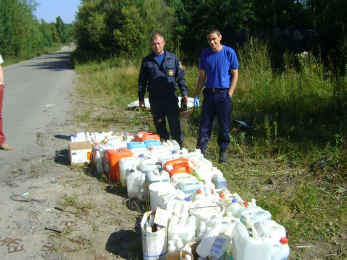 В воскресенье, 14 августа, на дороге между Кузовлевским трактом и дорогой к Сосновскому КПП Северска были обнаружены емкости с неизвестными химикатами, сообщил Иван Темерев (ТО ПСС).