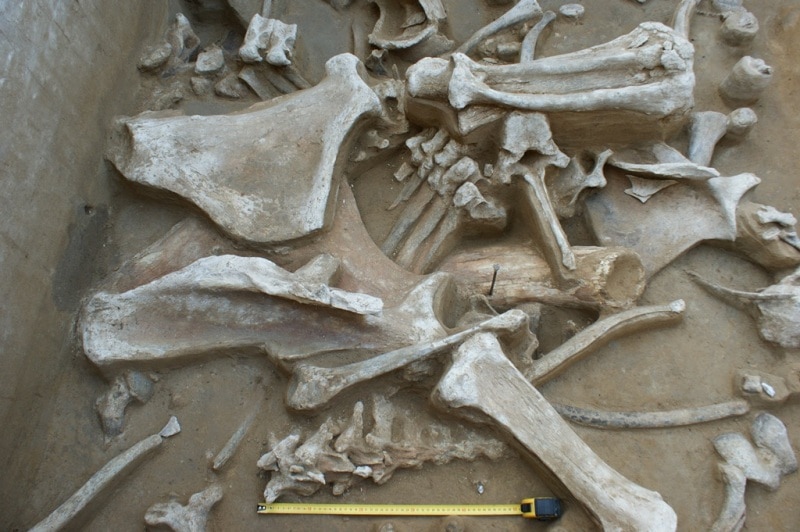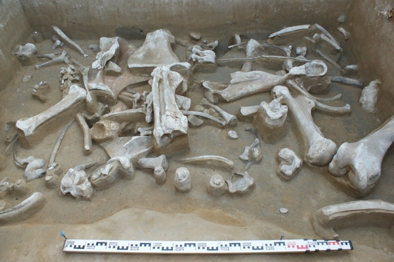 Начав углубляться, палеонтологи обнаружили костеносные отложения с такой высокой численностью остатков, которая ни на Волчьей гриве, ни в каком-нибудь другом мамонтовом местонахождении России не упоминается. Концентрация на один квадратный метр, при толщине отложений до полуметра, местами превышала сто находок – позвонки, ребра, кости конечностей и так далее.