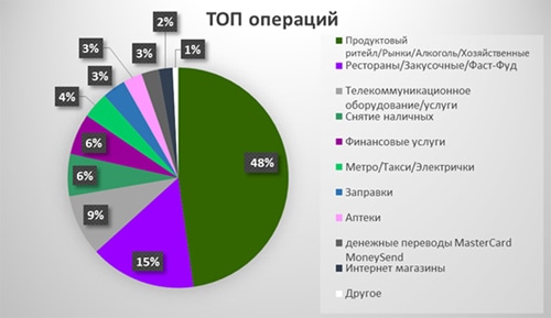 За месяц, прошедший с момента запуска проекта, было выдано около 42 000 и совершенно почти 100 000 транзакций. Самая популярная операция по карте — оплата товаров и услуг.