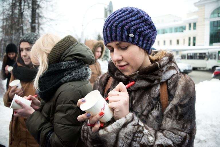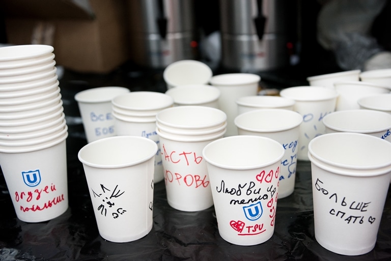 — Я написала на своем стаканчике: «С наилучшими пожеланиями от магистрантки биологического факультета Екатерины. Пусть это кофе согреет вас и ваши души», — говорит магистрантка биологического института ТГУ Екатерина Коновалова. — Я вчера прочла в интернете про эту акцию, и тоже решали поучаствовать. Считаю, что такие мероприятия сплачивают людей.