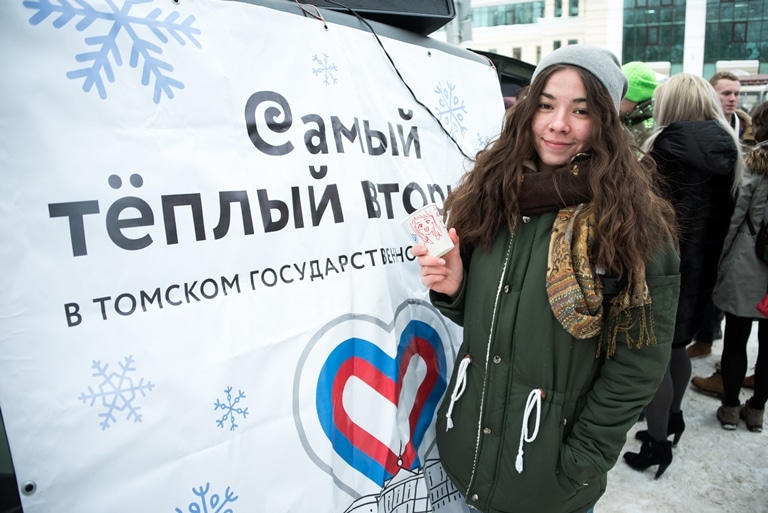 В Международный день благотворительности, 29 ноября, Томский государственный университет организовал «Самый теплый вторник»: угостил больше тысячи томичей горячим кофе, провел акцию по сбору вторсырья «Экомарафон» и «Фримаркет» — бесплатную ярмарку для обмена вещами.