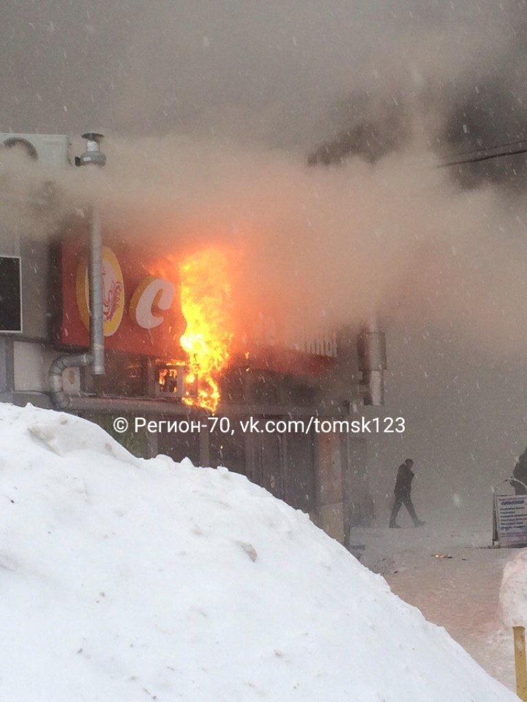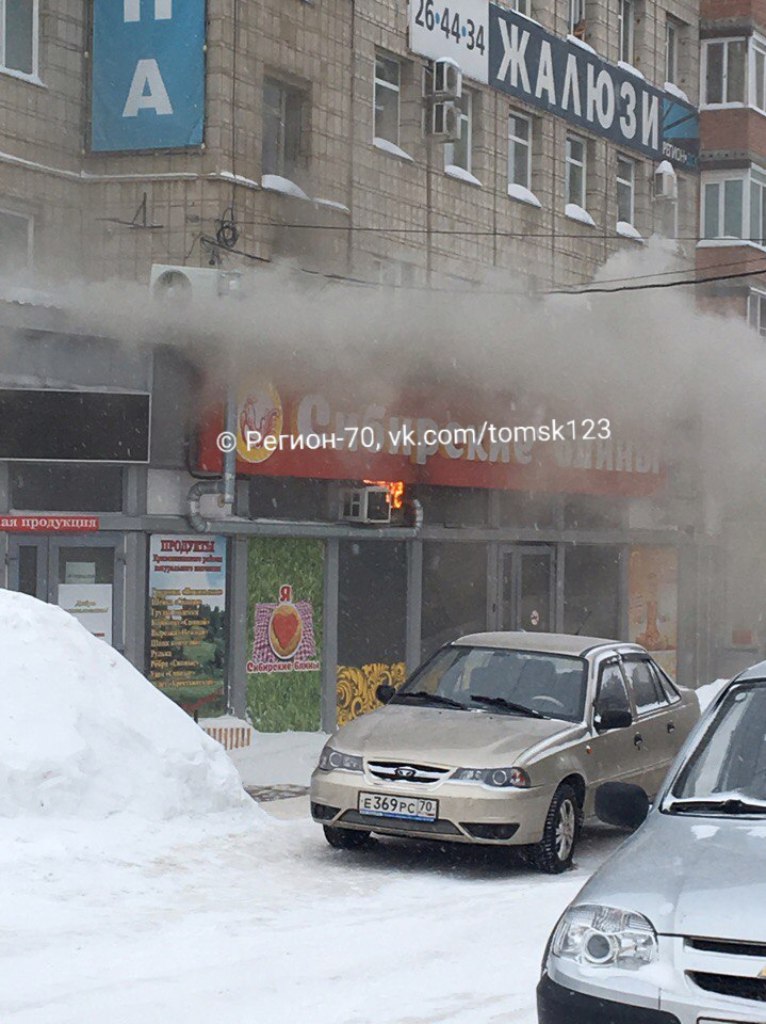 Сегодня, 25 января, в Томске на пересечении пр.Фрунзе и ул.Шевченко загорелся киоск «Сибирские блины».