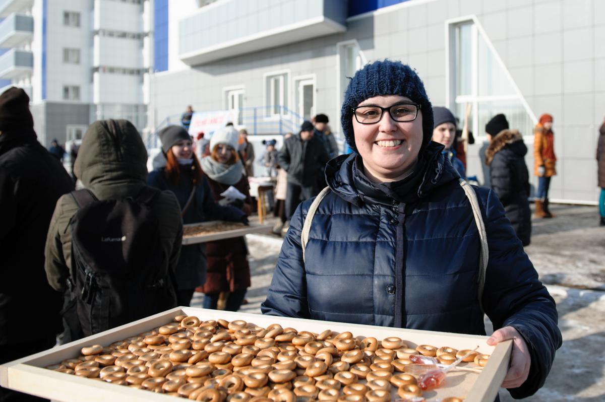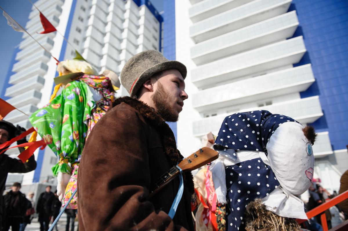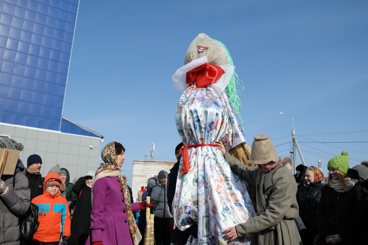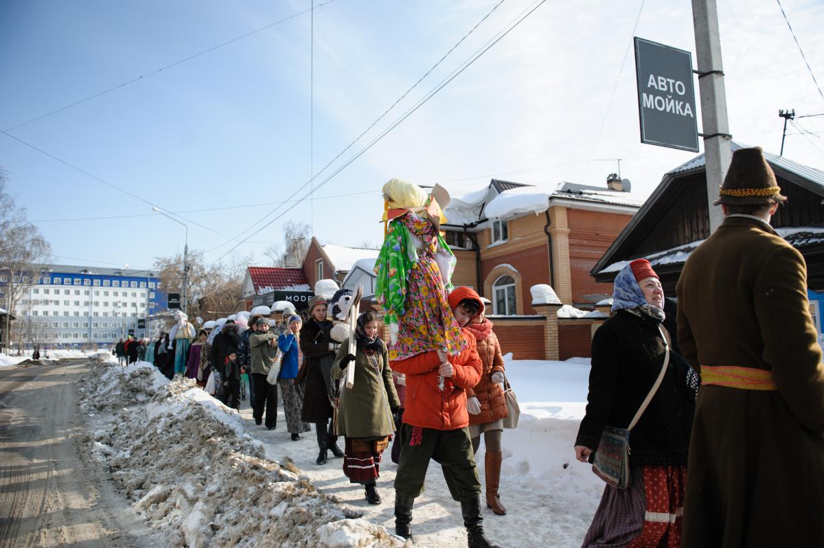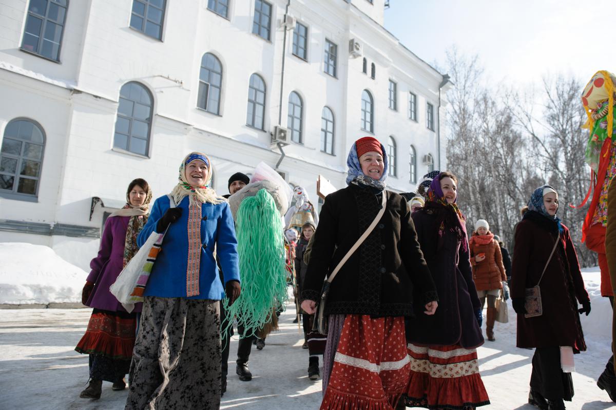 Начались проводы с Масленичного шествия: студенты Томского госуниверситета, с песнями и плясками, пронесли установленные в Университетской роще чучела Масленицы к общежитию «Парус», где им уже был подготовлен радушный прием. Конкурс масленичных чучел был объявлен накануне, участие в нем приняли сотрудники и партнеры университета. Авторы всех восьми работ получили дипломы, а лучшим было признано чучело от детского сада № 49.