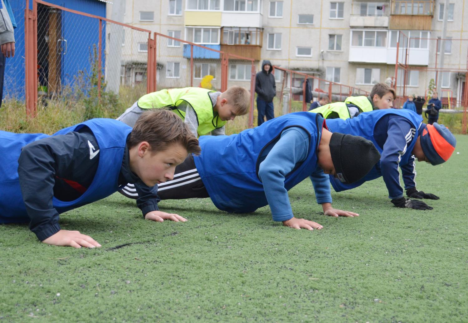 Кроме футбола юные жители поселка смогли попробовать свои силы в спортивной эстафете. На различных рубежах они пробовали свои силы в спортивных упражнениях.