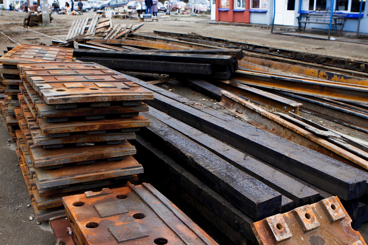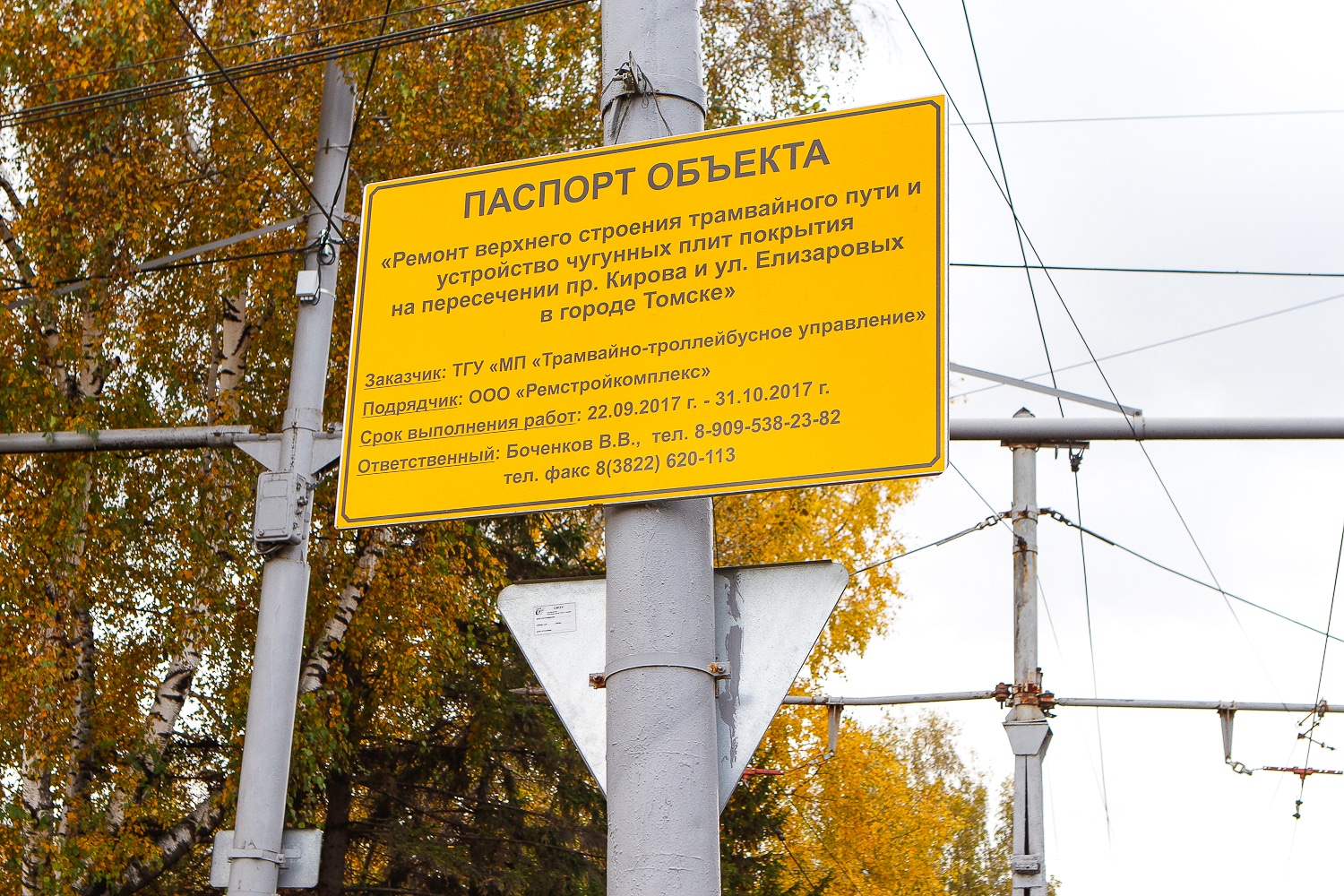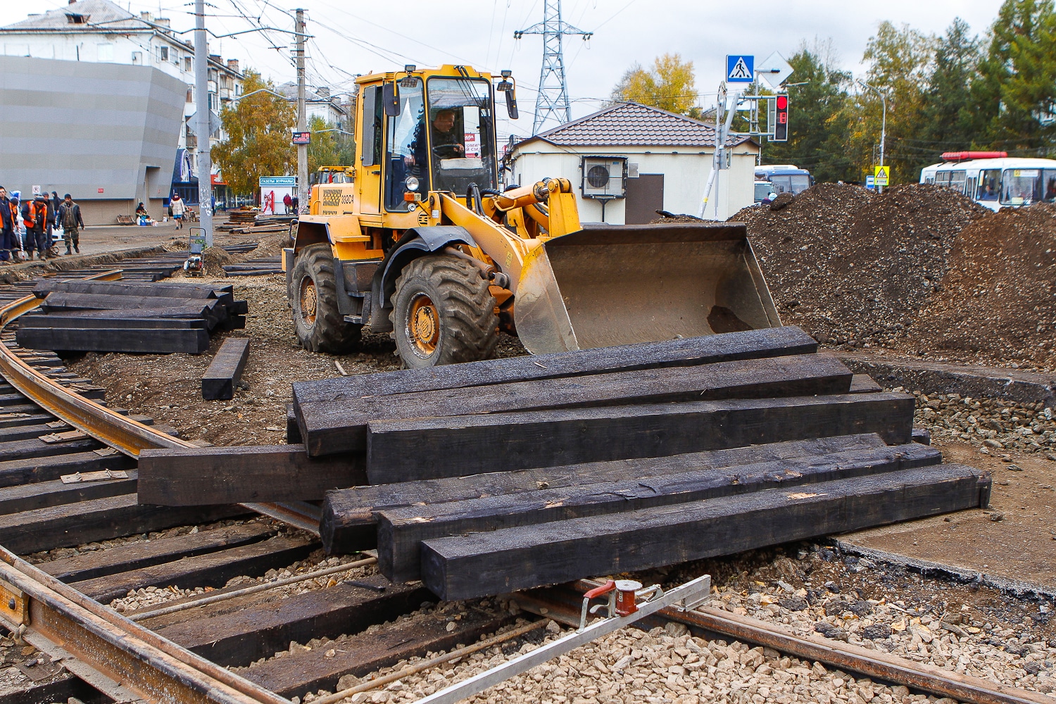 Здесь муниципальное «Трамвайно-троллейбусное управление» проводит капитальный ремонт верхнего строения трамвайного пути и обустраивает чугунные плиты покрытия.