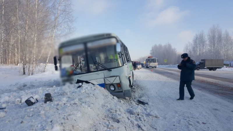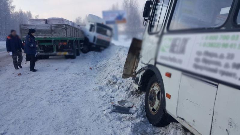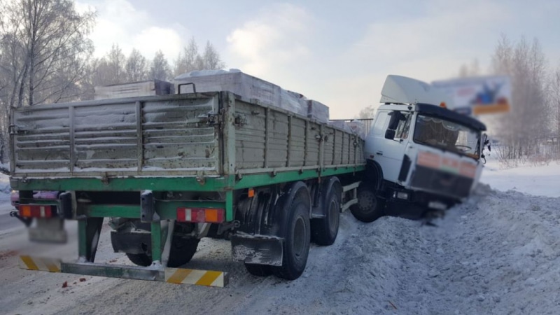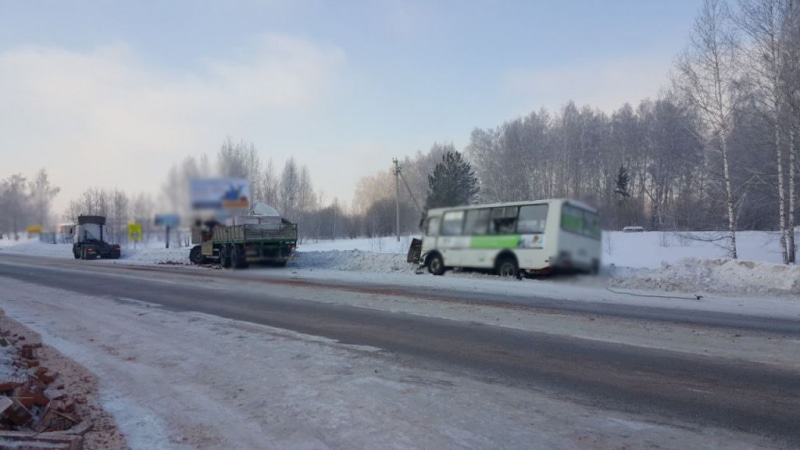 Инцидент произошел около 11.40 на Иркутском тракте, 213. По предварительным данным, 50-летний водитель грузовика не справился с управлением. В результате МАЗ столкнулся с попутным автобусом.