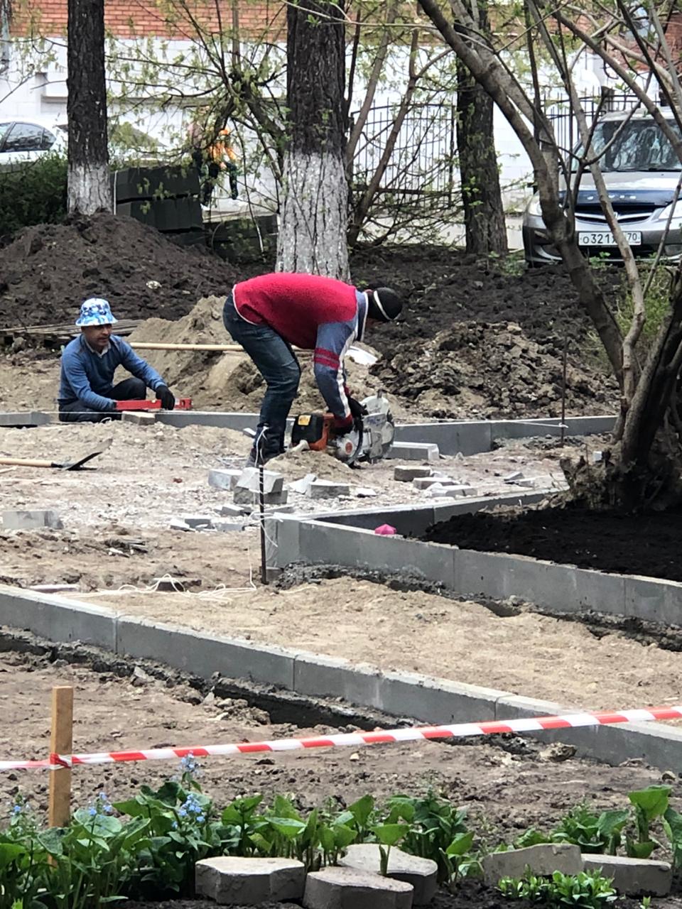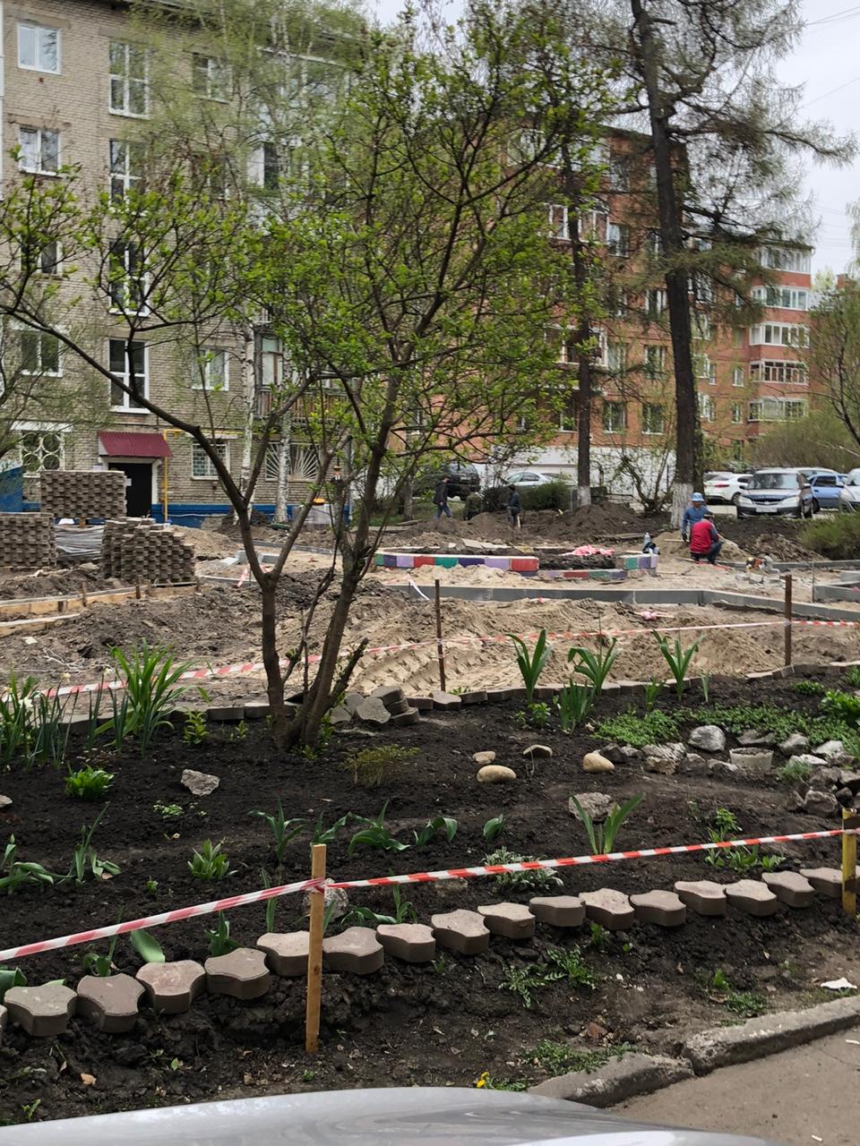 На ремонт 4-х дворов уже заключены контракты и определены подрядчики. В конце апреля начались ремонтные работы возле домов по адресу: Дзержинская 24 и 24а. На площадку было завезено несколько машин плодородного грунта для отсыпки новых газонов, тротуарная плитка для укладки пешеходных дорожек. Согласно проекту, в центре двора будет спроектирована современная зона отдыха для жителей с лавочками и клумбами.