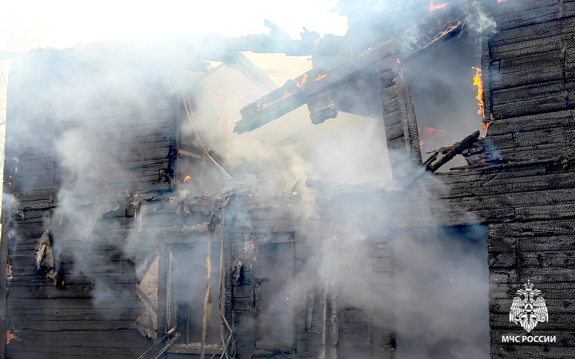 Уточняется, что у здания полностью сгорела и обрушилась обрешетка крыши, прогорело и обрушилось потолочное перекрытие.