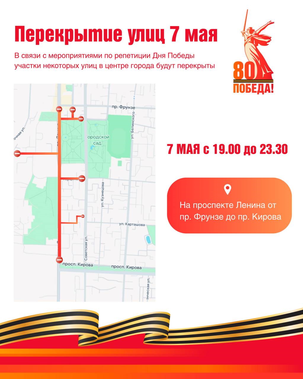 В среду вечером, 7 мая, в Томске ограничат движение на время проведения генеральной репетиции Парада Победы, сообщает пресс-служба мэрии.