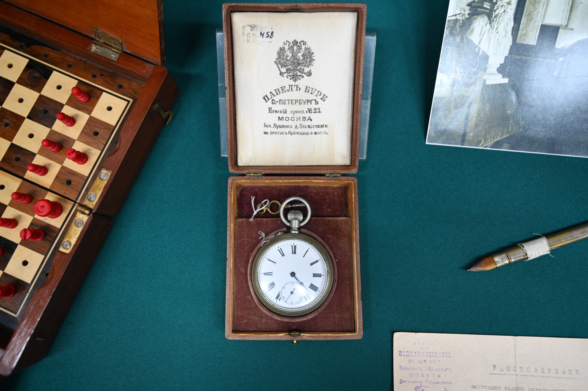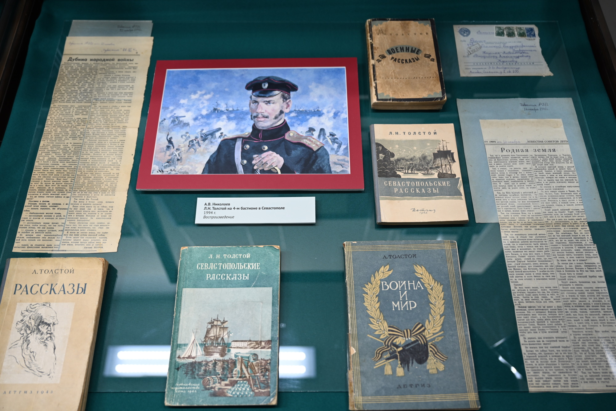 В экспозиции, рассказывающей о подвиге музейщиков, которые сумели сохранить толстовские реликвии, представлены материалы и предметы из собраний московского и яснополянского музеев Льва Толстого: книги из личной библиотеки писателя, его любимые шахматы, а также принадлежавшие Льву Николаевичу карманные часы, карандаш в футляре и печатку с гербом Толстых — эти вещи были в числе эвакуированных экспонатов и сейчас приехали в Томск снова.