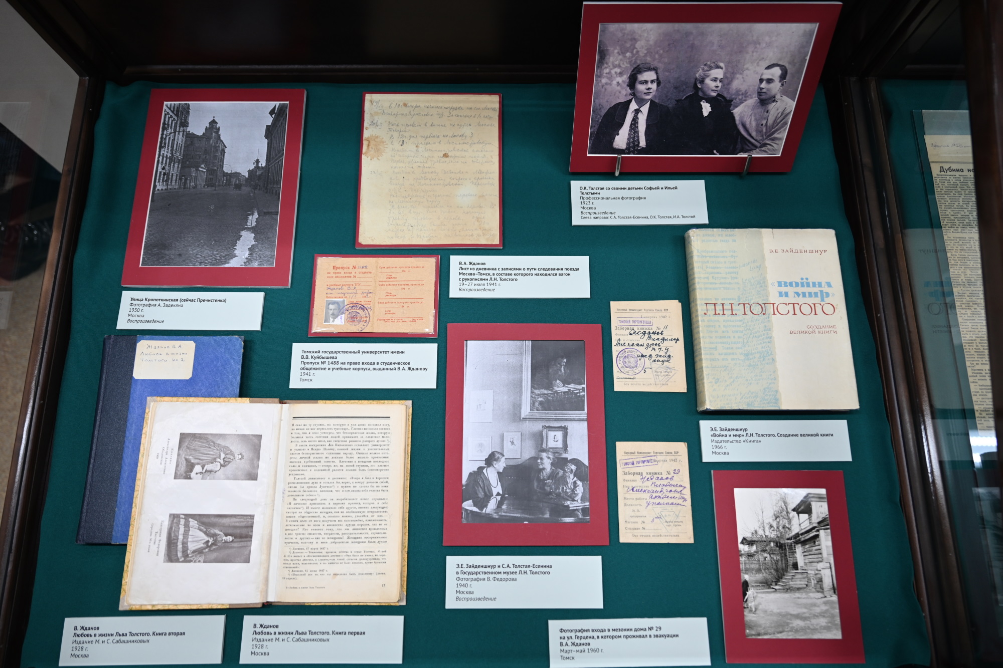 Другой сюжет экспозиции связан с заведующим рукописным отделом Государственного музея Толстого Владимиром Ждановым, который сопровождал рукописи во время эвакуации из Москвы, был одним из хранителей толстовского наследия в Томске. Документы, письма, фотографии, книги передают события и атмосферу этих четырех лет.