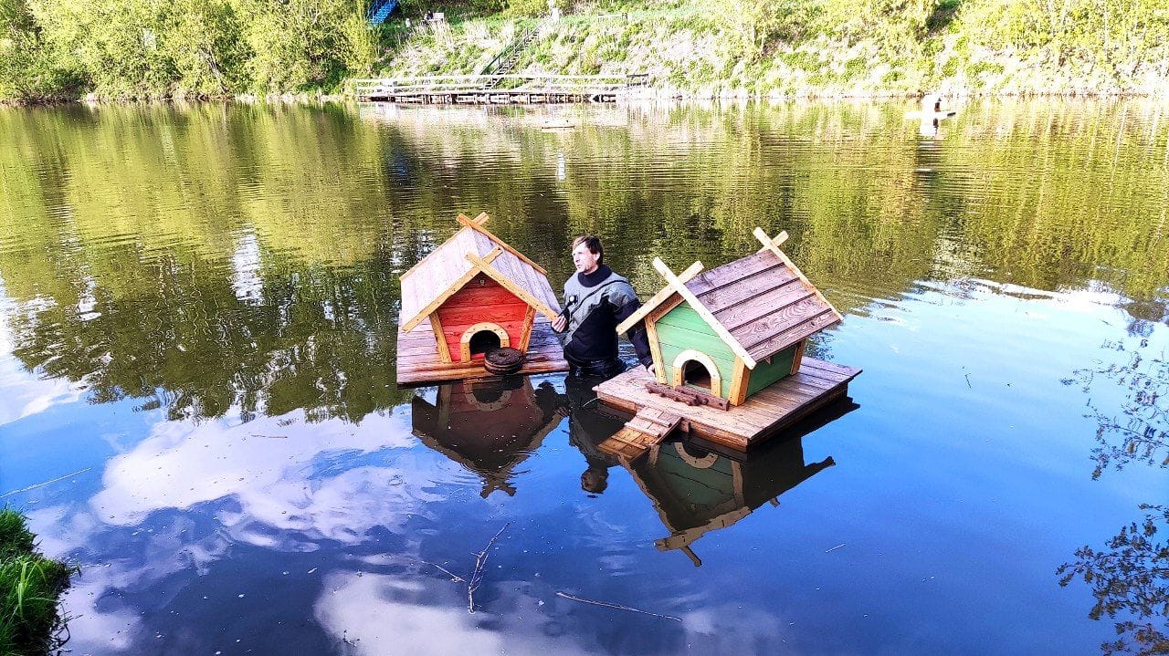 На Университетском озере установили новые плавучие домики для уток