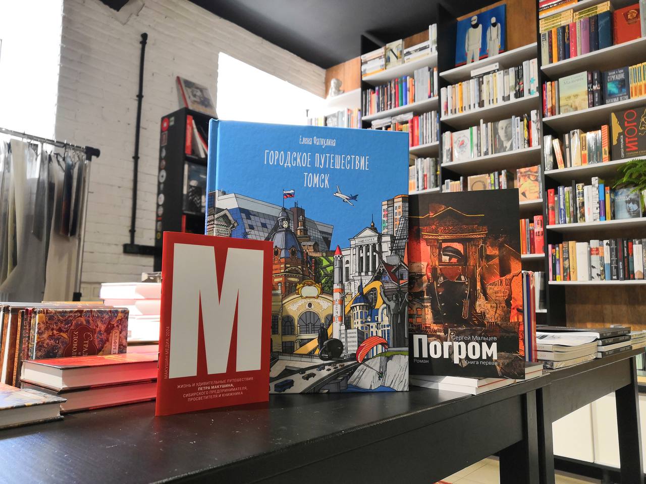 Здесь можно приобрести иллюстрированный путеводитель «Городское путешествие. Томск», покетбук «Жизнь и удивительные путешествия Петра Макушина, сибирского предпринимателя, просветителя и книжника» и исторический фикшн в двух частях от томского краеведа и историка Сергея Мальцева «Погром».