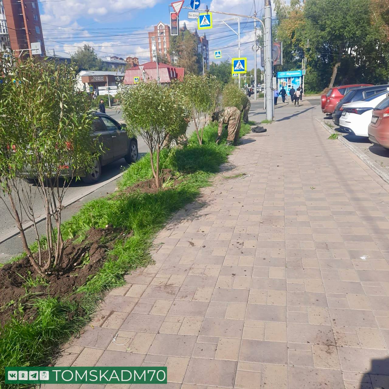 В Томске на ул. Красноармейской подрядчик приступил к замене деревьев и кустарников, не прижившихся после посадки в 2024 году. Работы ведутся в рамках исполнения гарантийных обязательств, сообщает пресс-служба мэрии.