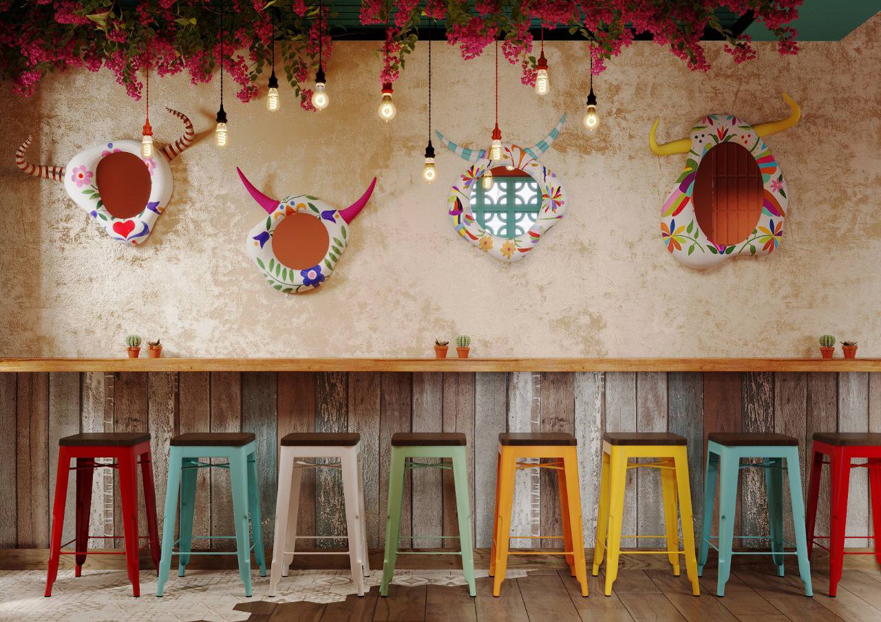 — Хотелось передать мексиканскую, летнюю, яркую атмосферу, поскольку в Томске нам не хватает солнца и красок, — говорит Евгений. — Мне очень нравится по атмосфере петербургский проект Paloma Cantina (где я, кстати, однажды работал гостевую смену, они приглашали меня после победы на конкурсе в Венесуэле). В Москве интересная Sangre Fresca, но там очень сдержанная визуально Мексика. Мы своим буйством красок колоссально от них отличаемся, но в нашем дизайне есть некоторые схожие элементы.