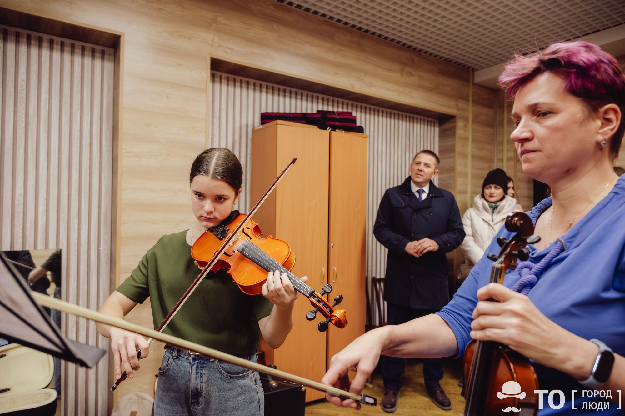 «Главная задача была — сохранить территориальную близость [на время ремонта] для ребятишек, занимающихся в музыкальной школе, — сообщил Константин Чубенко. — Поскольку они ездят со всех частей города, сильно менять локацию и уже сложившуюся транспортную схему мы не хотели. Поэтому нашли это здание [на пр. Фрунзе, 32а] и общими усилиями смогли разместиться здесь».