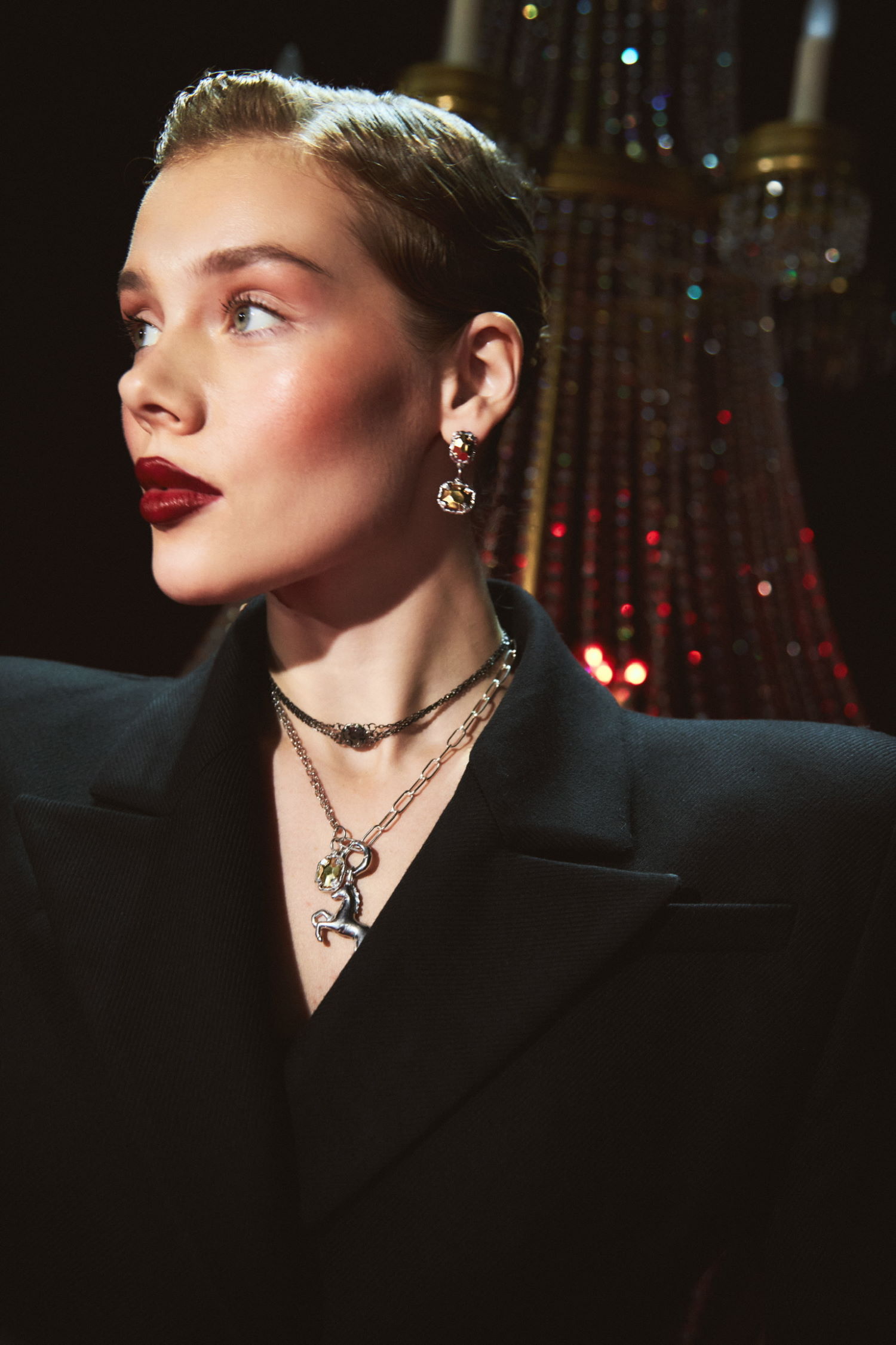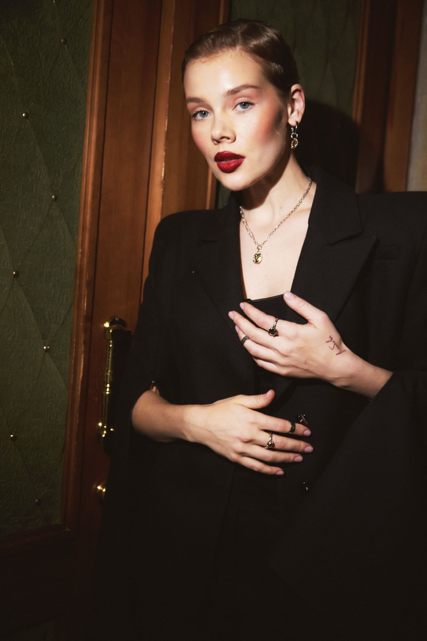 В коллекцию вошли колье и серьги, каффы и кольца — украшения, призванные подчеркнуть внутреннюю энергию и характер своей обладательницы. Тем, кто в диалоге между зрителем и героем выбирает вторую роль, авторы предлагают познакомиться с «Королевой драмы» — коллекцией, в которой личное присутствие на сцене становится главным акцентом.