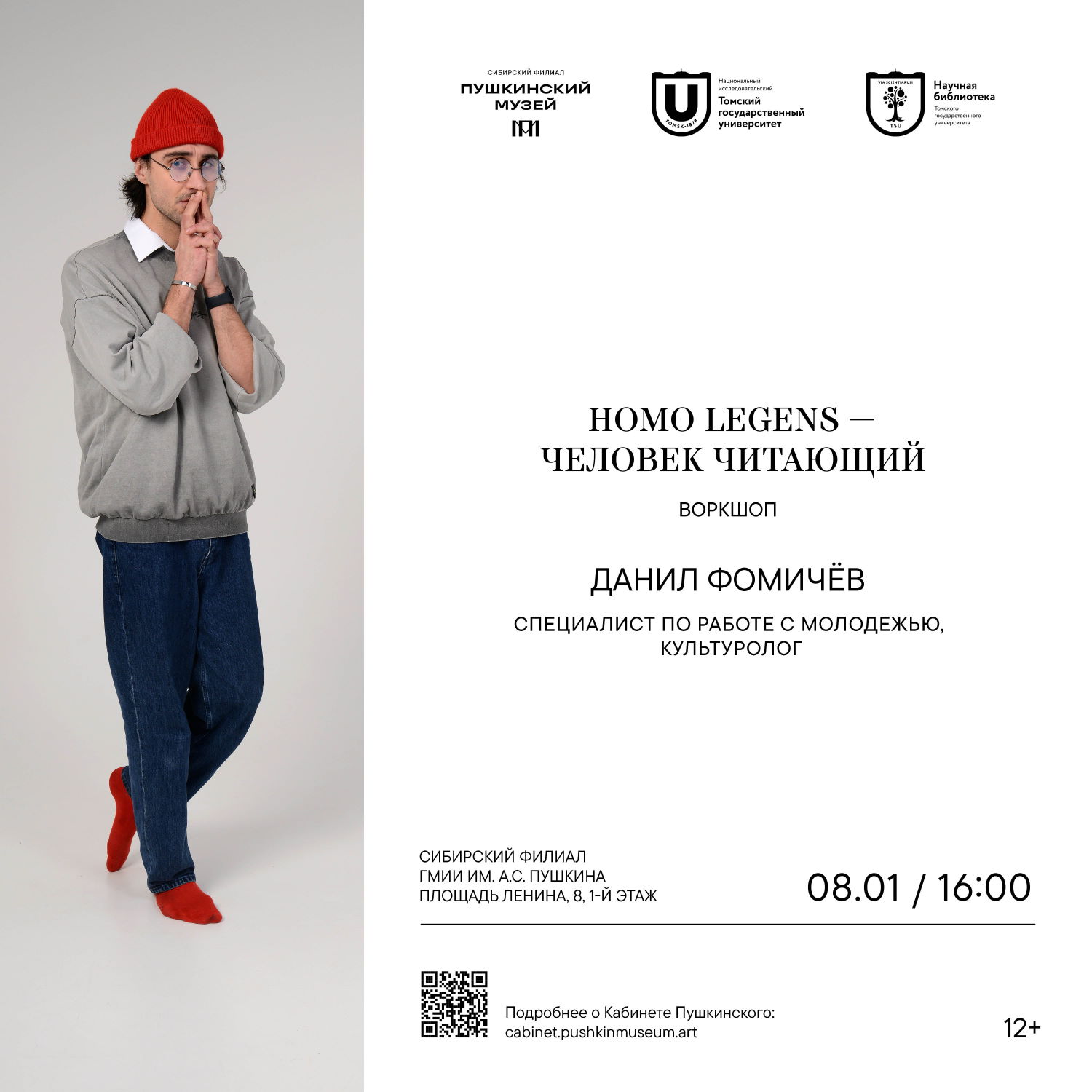 Открывает программу воркшоп «Homo Legens — Человек Читающий», посвященный трансформации культуры чтения. Событие пройдет в формате открытого диалога с аудиторией. Его проведет специалист по работе с молодежью, культуролог, руководитель и ведущий книжных клубов для подростков Данил Фомичёв. На примерах он объяснит, как устроено чтение, как оно формирует человека и как продолжает определять траекторию развития мысли.