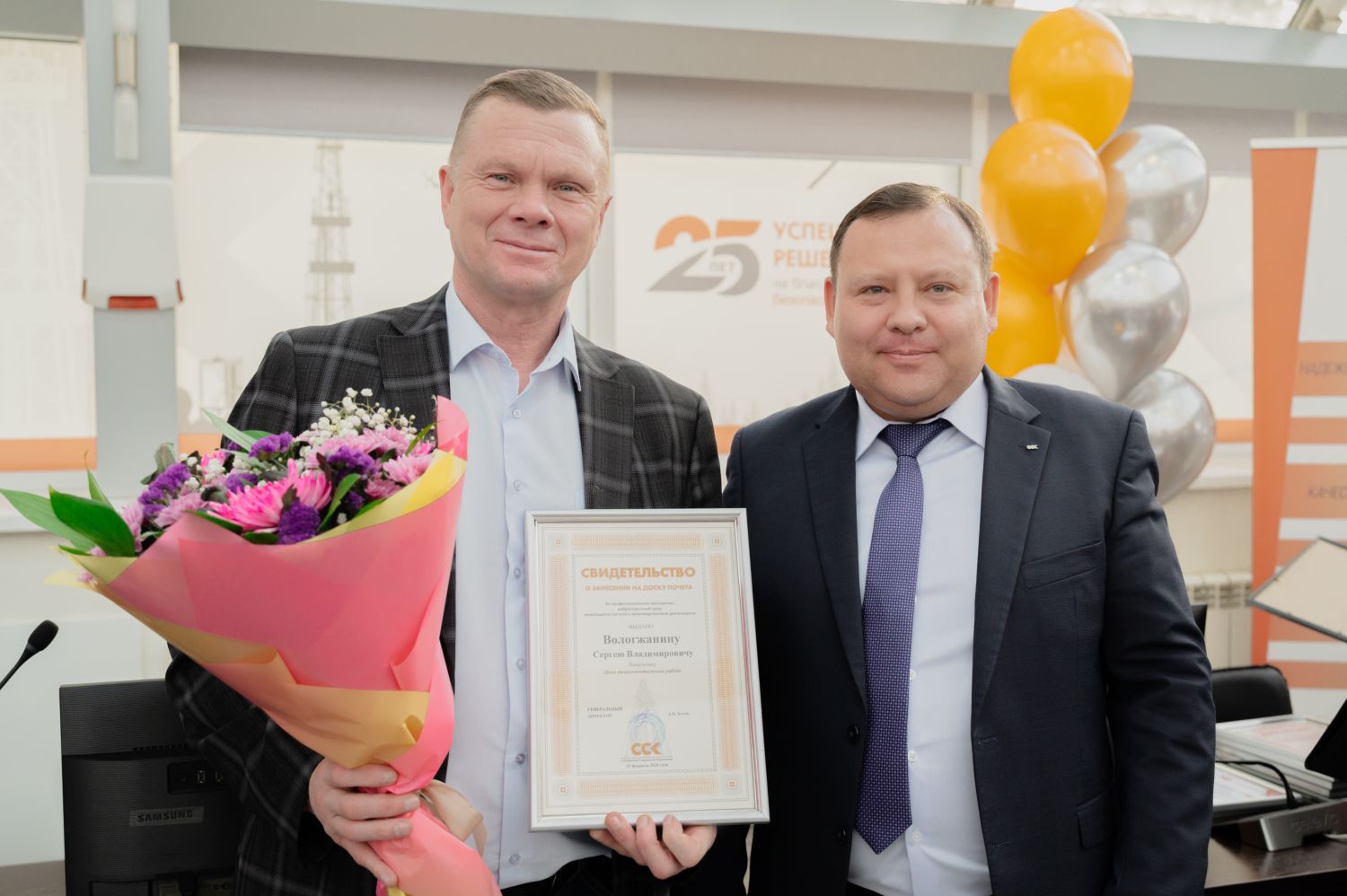 Наградами были отмечены и сотрудники цеха вышкомонтажных работ Томского филиала АО «ССК». Ведущий инженер по вышкостроению Владимир Жуков получил почетную грамоту, а начальник цеха Сергей Вологжанин удостоился чести быть занесенным на Доску почета филиала.