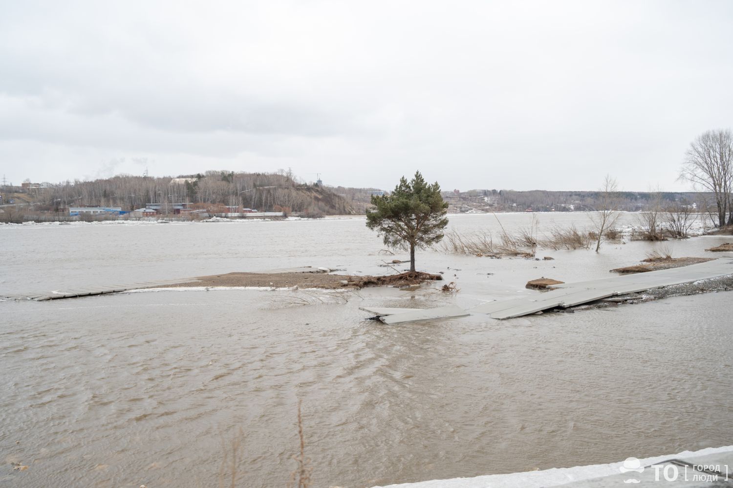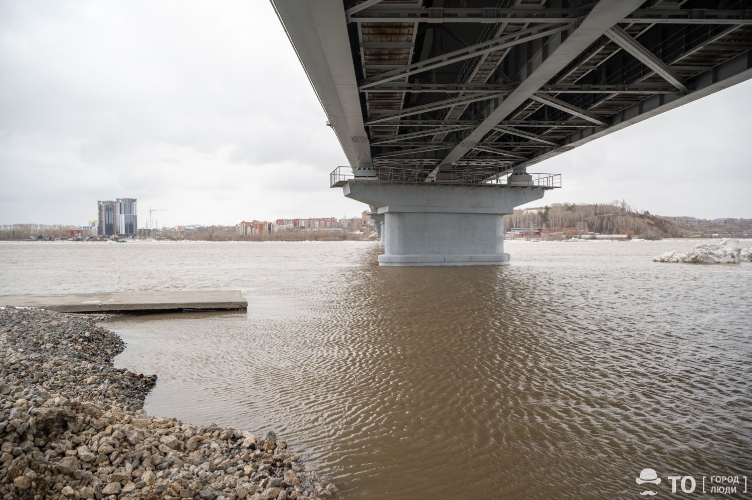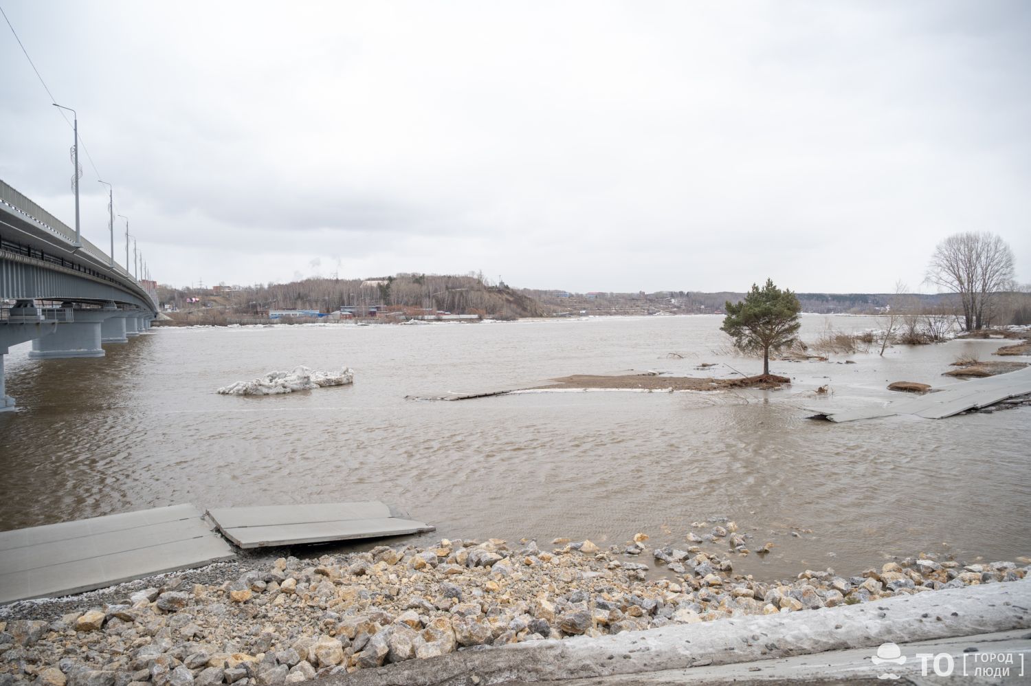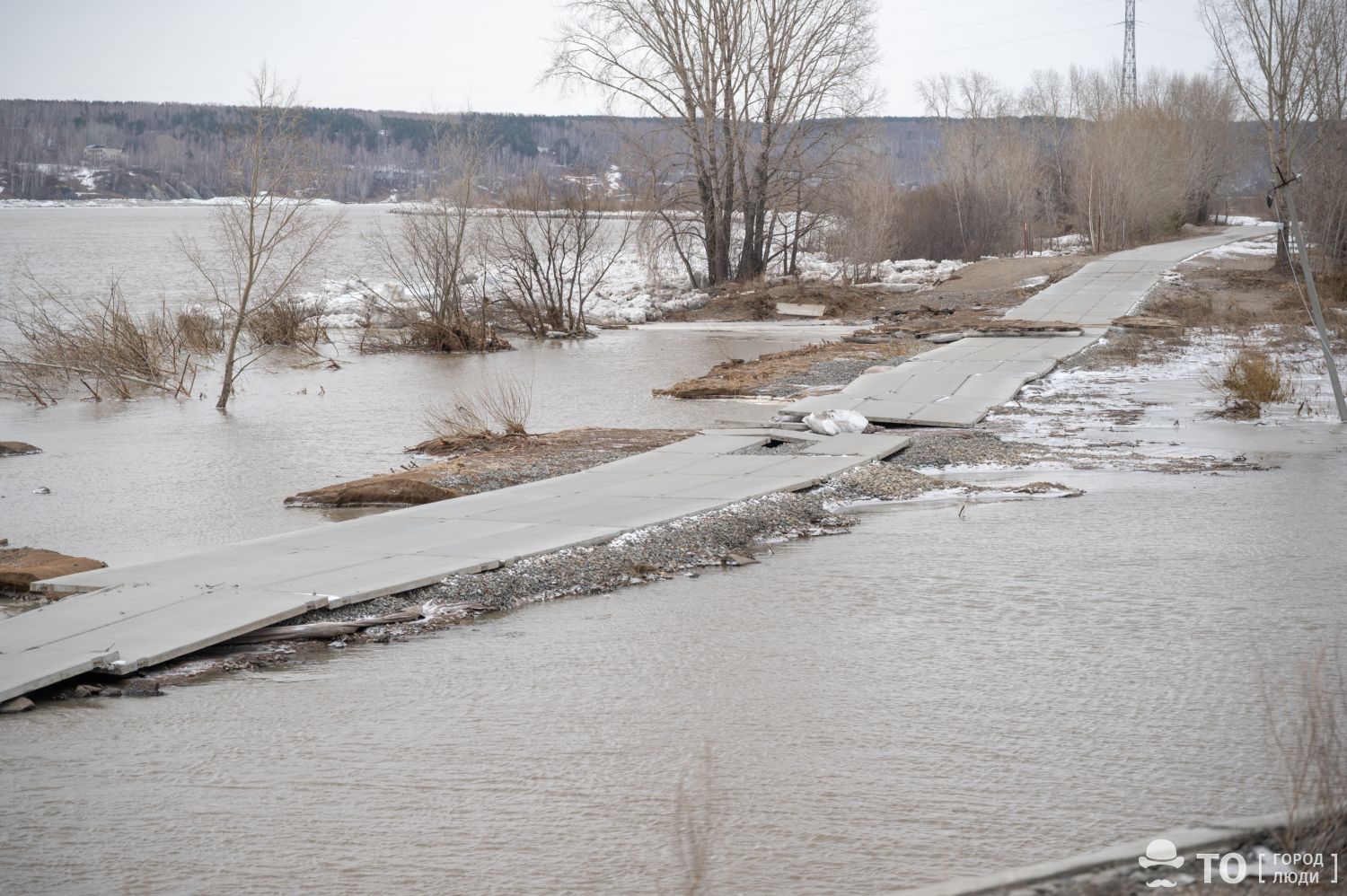В Томске дорога под Коммунальным мостом пострадала при паводке