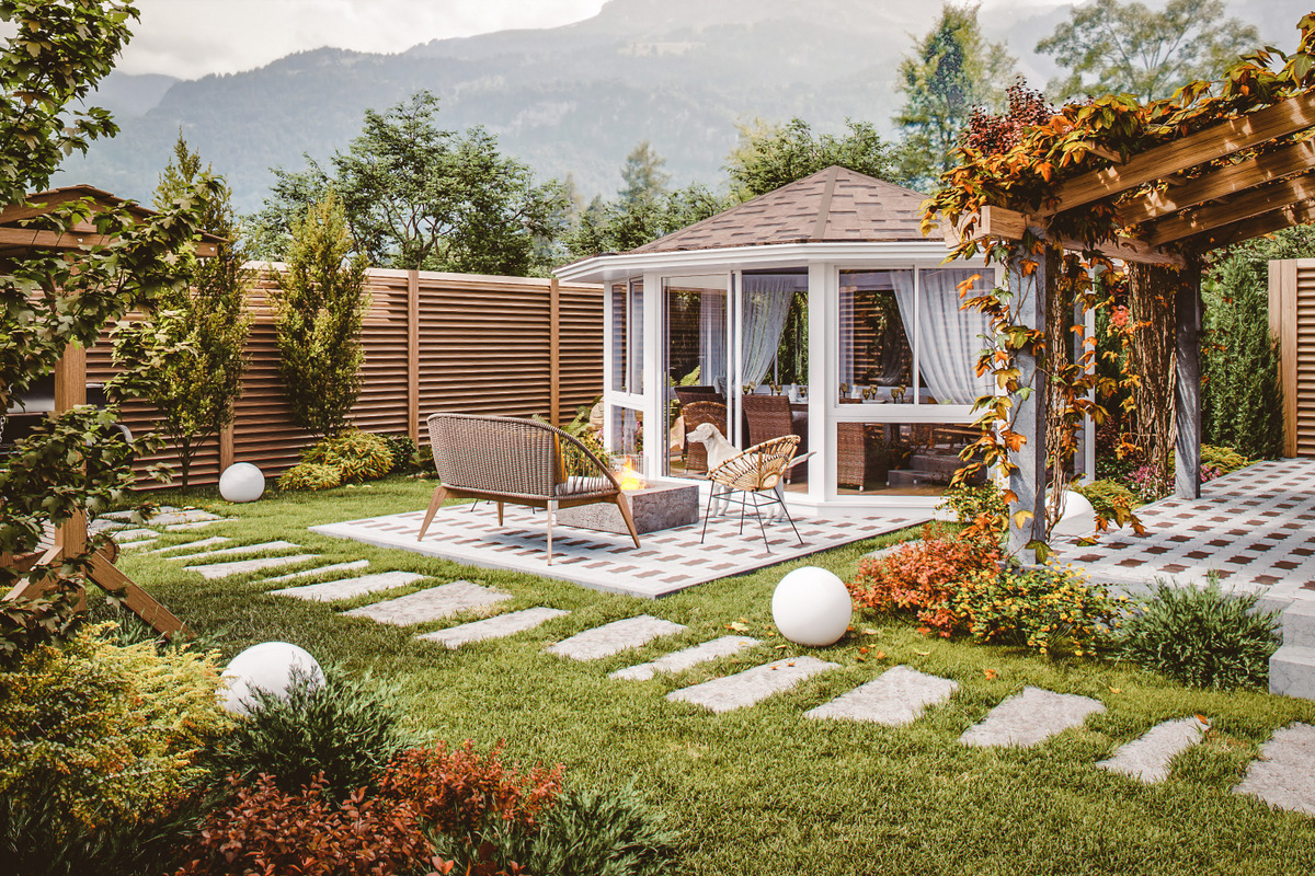 Создание дизайна для приусадебных участков является особым видом работ. Для обустройства открытых пространств нужны совершенно другие материалы, решения и концепции. При формировании ландшафтного дизайна используется озеленение, декоративные элементы ограждений, небольшие конструкции и малые архитектурные формы. Например, фонтанчики, пруды, мосты, водопады, беседки и пр.